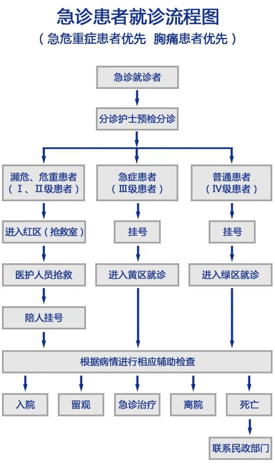 2. 紧急救治对于病情危急、生命垂危的患者、三无患者、醉酒患者、胸痛、卒中,会立即开通绿色通道被送往抢救室进行紧急救治,如心肺复苏、建立静脉通道、吸氧、气管插管等。