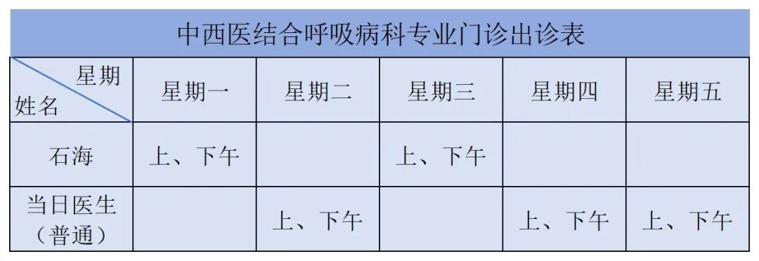 1. 石海:副院长,学科带头人,医学硕士,主任医师,中西医结合呼吸病科主任。擅长肺部感染、慢阻肺、哮喘、呼吸衰竭、肺癌、间质性肺病、肺栓塞、肺动脉高压、胸腔积液、睡眠呼吸障碍、不明原因咳嗽咯血及疑难病症诊治,以及呼吸危重症抢救。