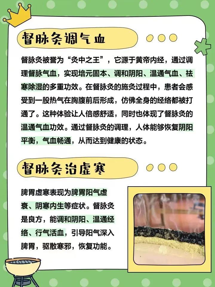 2.补五脏六腑阳气:督脉灸能够补充身体的阳气,对五脏六腑的阳气都有益处,起到扶正固本、强壮真元的作用。