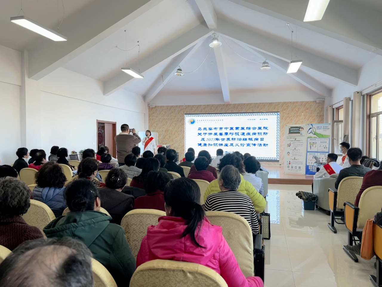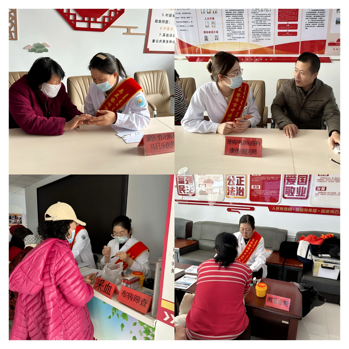 3月27日上午,团队来到前旗南洼村。考虑到乡村居民的需求,讲座用方言讲解,通俗易懂。医护人员为村民全面体检,诊断常见慢性病、呼吸道疾病,发放资料,还为养牛羊的村民做布病筛查。