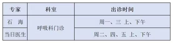 本周专家出诊表已出