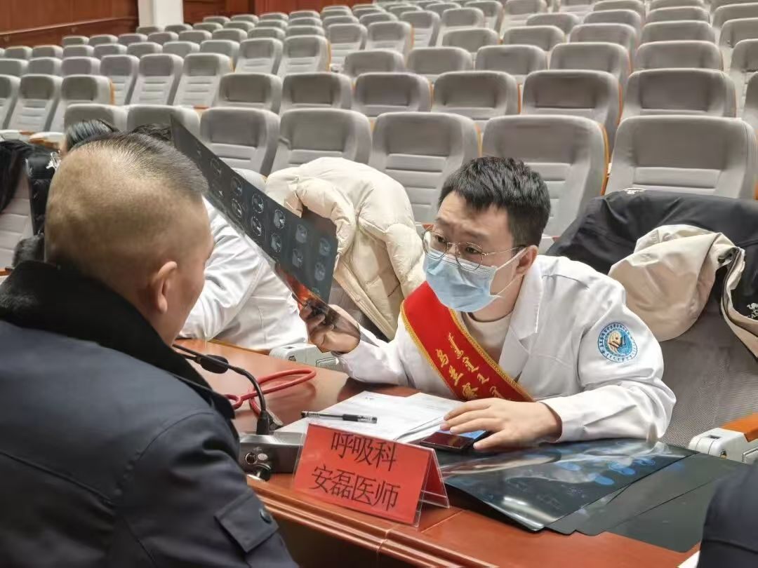 讲座结束后,义诊环节有序开展。我院组建的多学科医师团队,涵盖中医科、蒙科、外科、妇科、泌尿科、呼吸科、体检科及全周期健康管理科的骨干医师与护理人员,为现场干警提供全方位、多元化的健康服务。