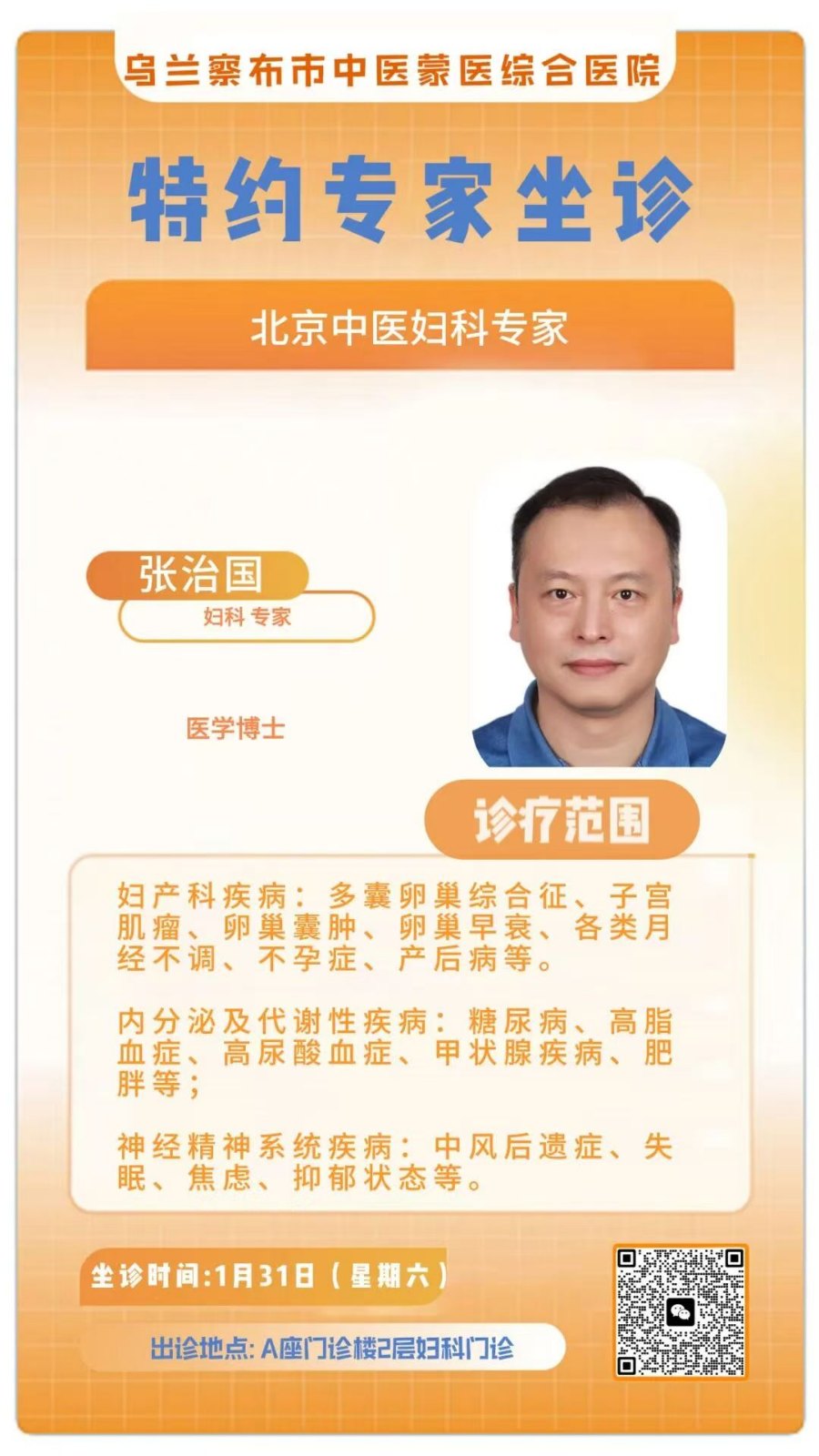 1月31 (周六) 北京中医妇科 张治国 出诊