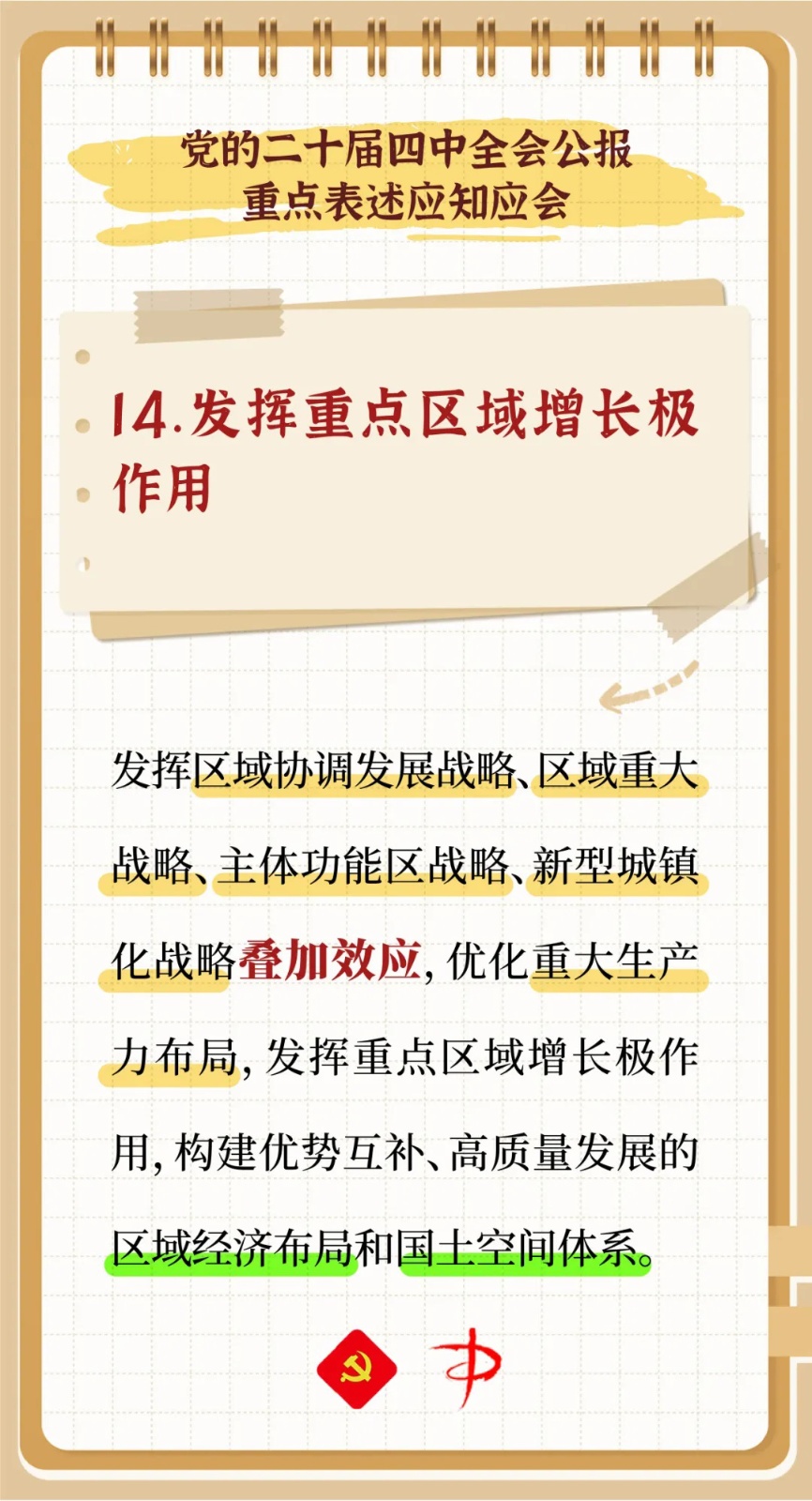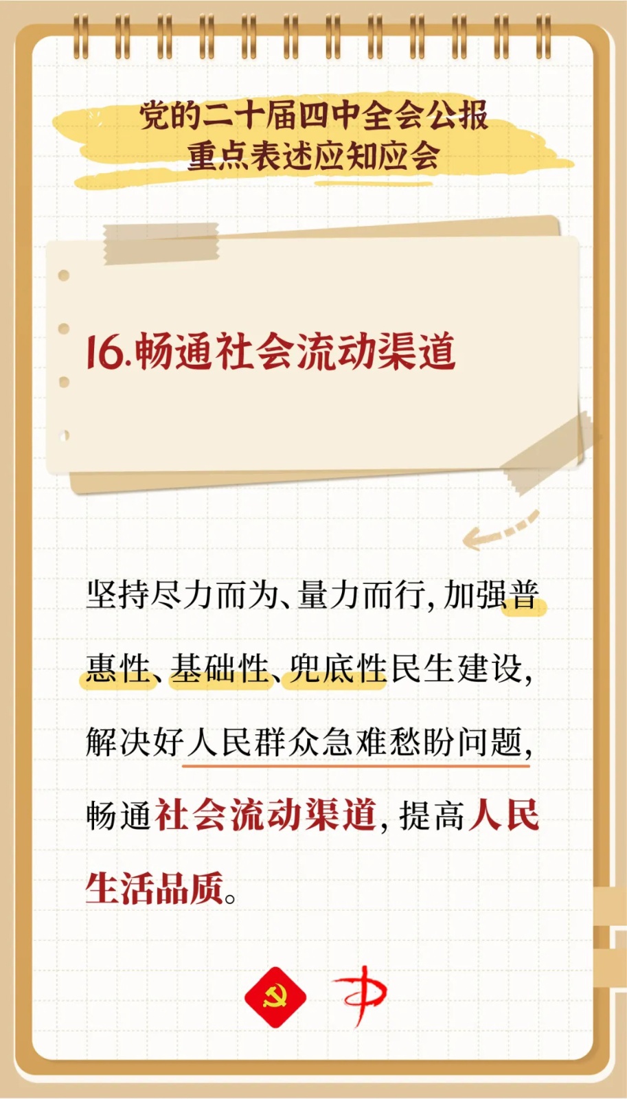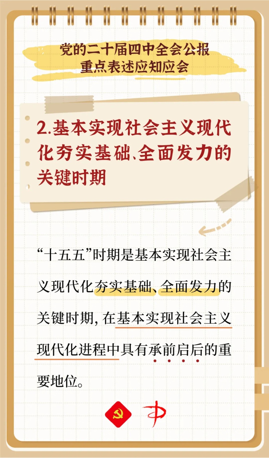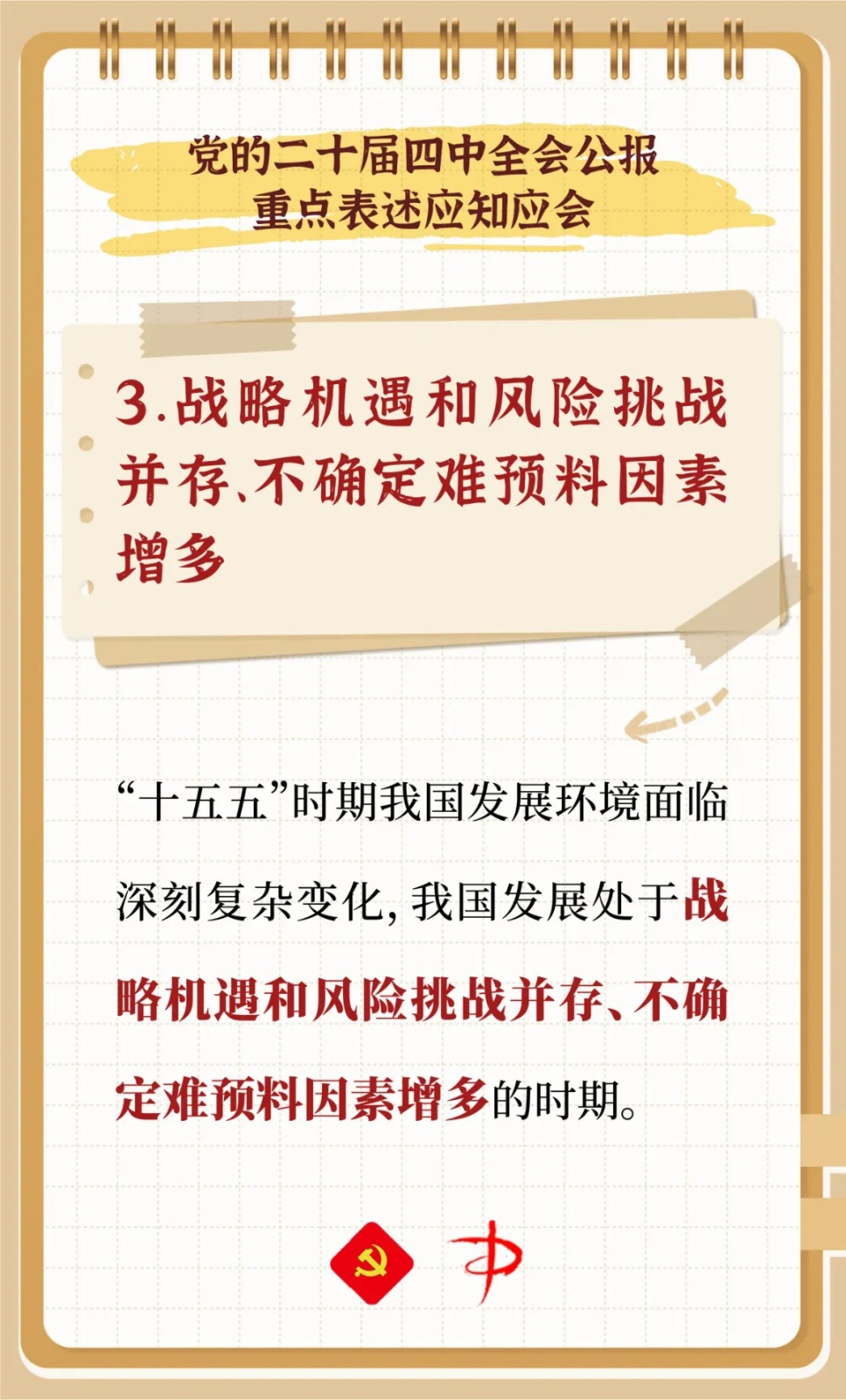 中国共产党第二十届中央委员会第四次全体会议,于2025年10月20日至23日在北京举行。为提高广大党员政治理论素养,丰富基层党组织学习素材,特别推出《中国共产党第二十届中央委员会第四次全体会议公报重点表述应知应会》,一起来看看吧!