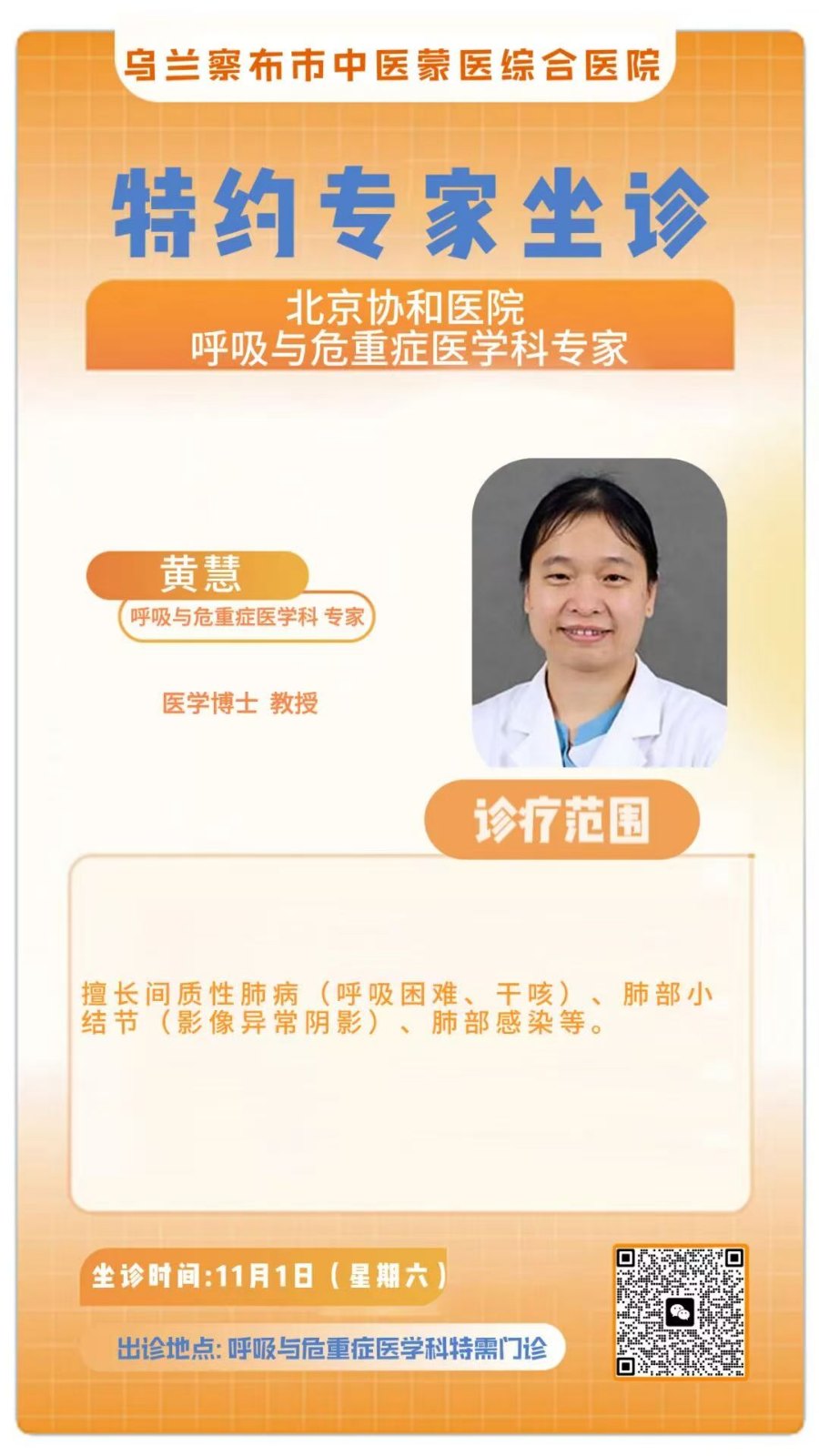 11月1日(周六)北京协和医院呼吸科 黄慧 出诊