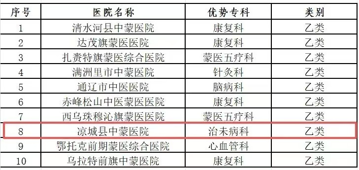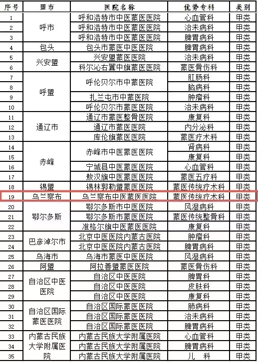 1.第二批内蒙古自治区中医(蒙医)优势专科(甲类)建设单位公示名单
