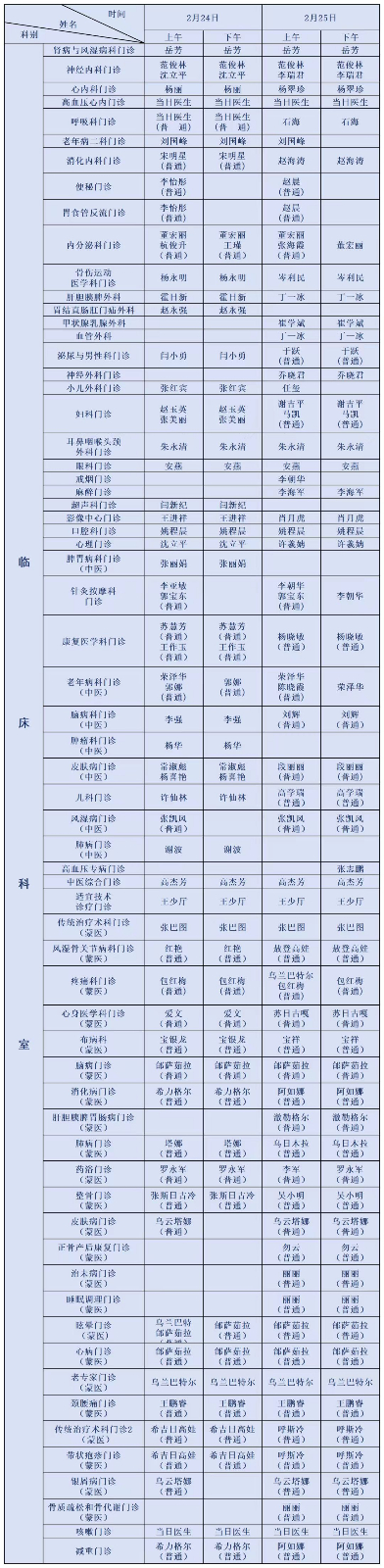 针对节后高发不适,内科、外科、妇科、儿科、口腔科、中医适宜技术科、蒙医传统疗术科全员待命: