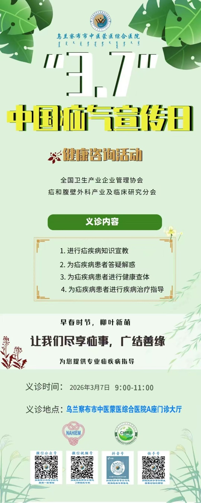 【义诊通知】3月7日(本周六)乌兰察布市中医蒙医综合医院开展疝病专项公益义诊