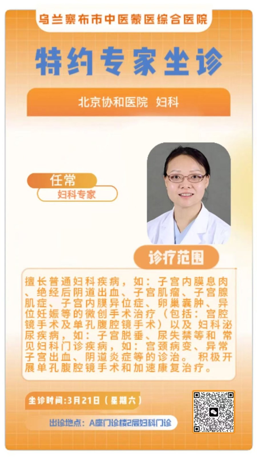 【看病不用东奔西走 北京名医咱这有】本周协和2位、同仁1位名医坐诊乌兰察布市中蒙医院,肝胆外科/妇科/眼科可诊可手术