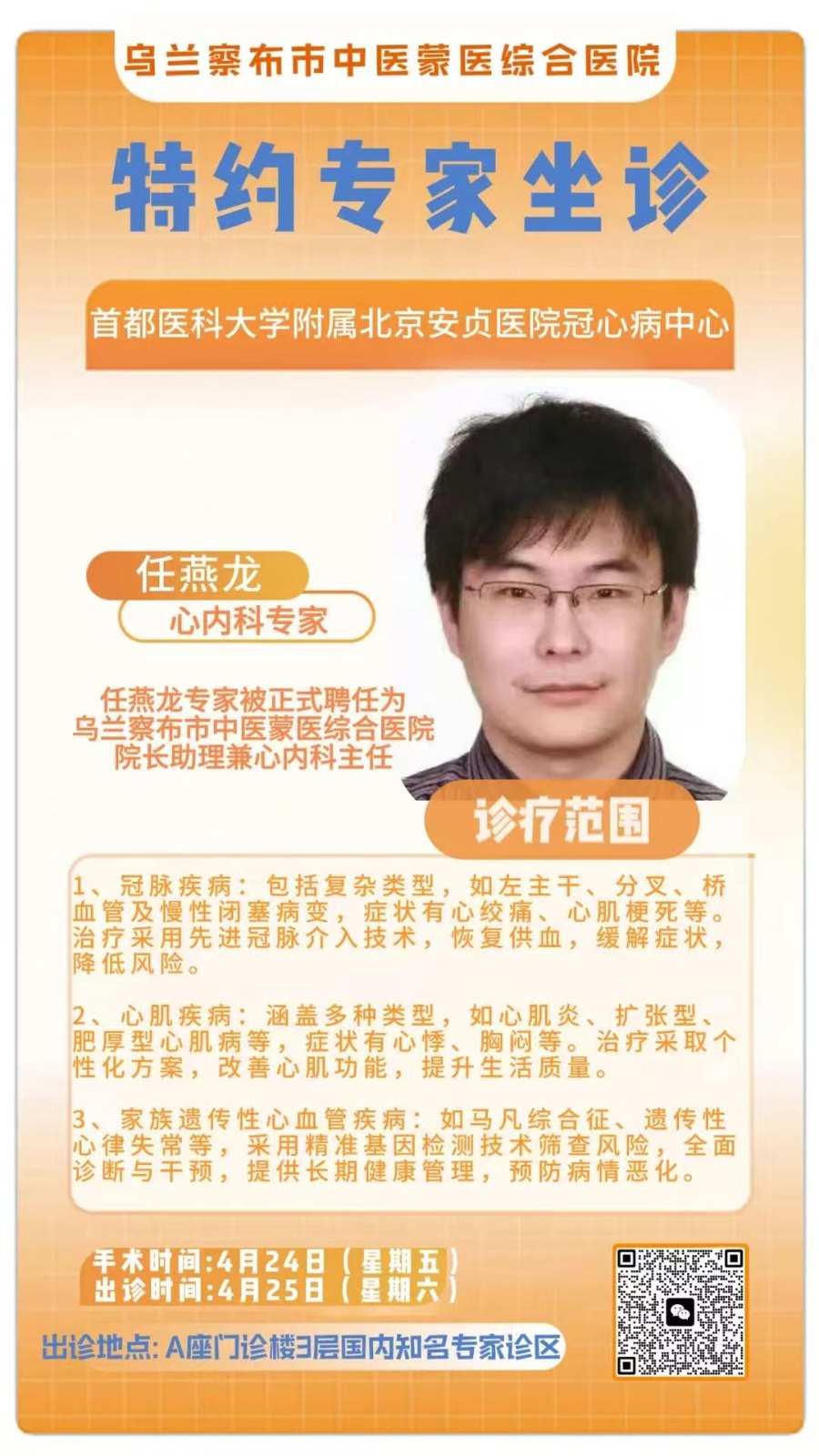 抢号难、路费贵、看诊来回折腾?别愁!4月21-26日(周二-周日),乌兰察布市中医蒙医综合医院特邀北京协和、广安门、安贞医院等顶尖三甲医院专家坐诊(手术),呼吸、妇科、眼科、心内、中医、儿科全覆盖,对症看更省心!